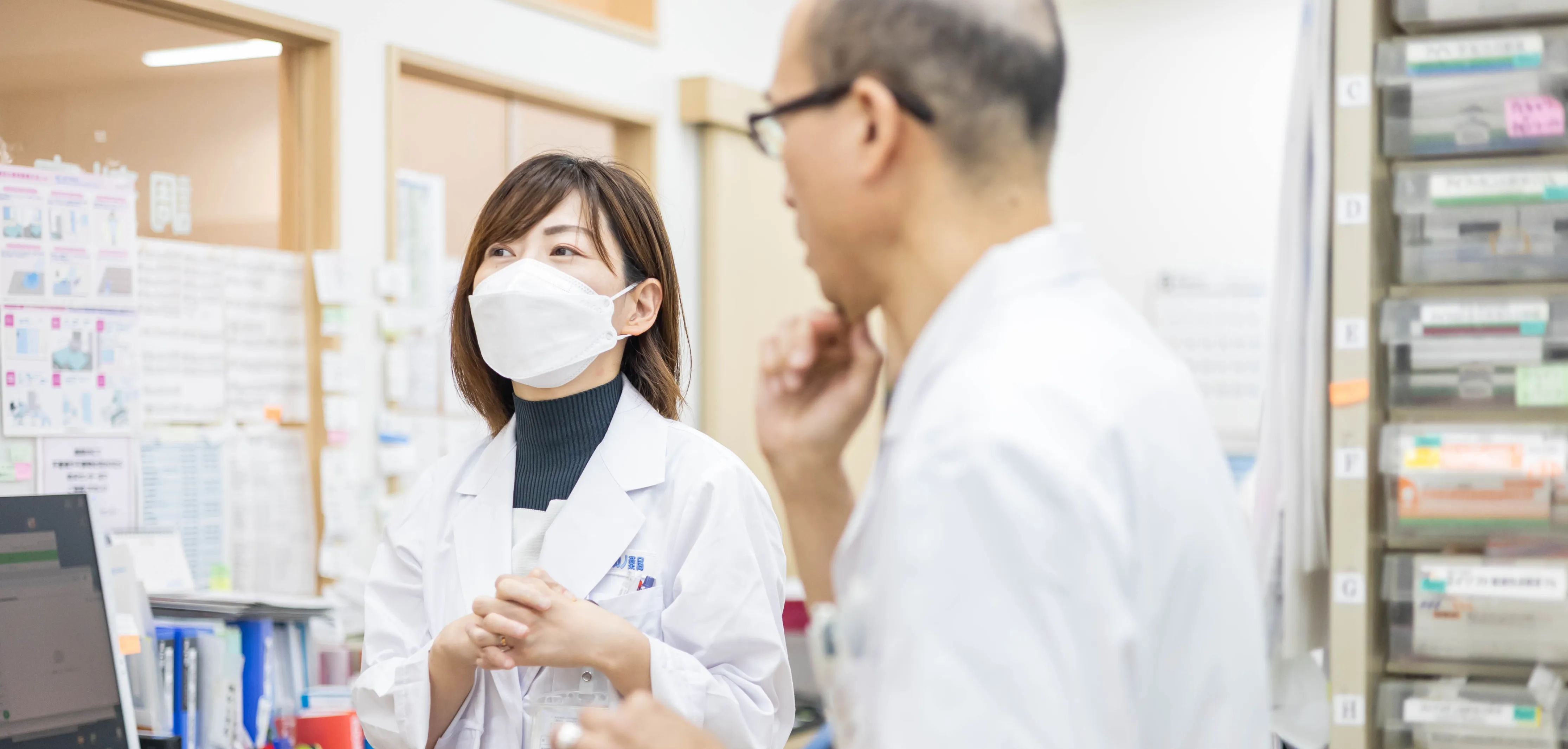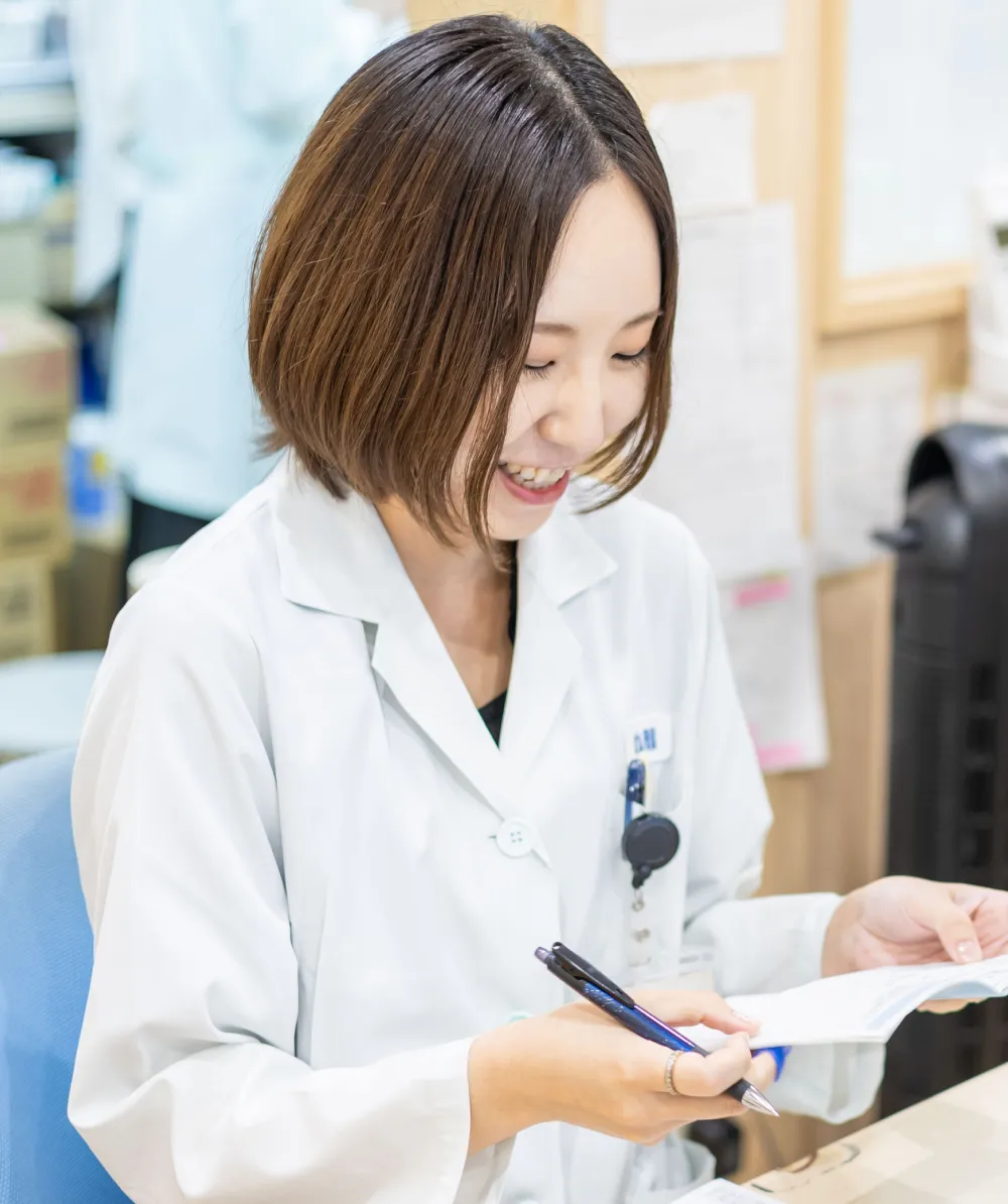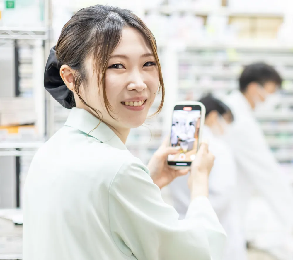 キャリアサポート室を中心に教育・研修体制を整えており、振り返りやフォロー面談を行いながら、皆さんの成長にしっかり伴走します。薬剤師も事務スタッフも勉強好きで向上心のある人が多く、お互いに助け合い、刺激し合いながら成長できる職場です。